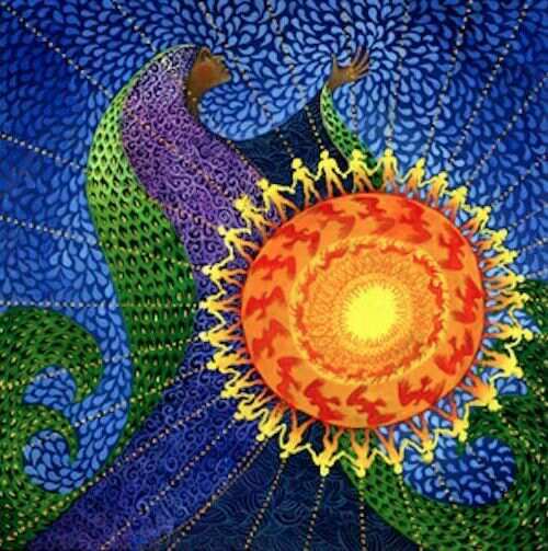 A tenyereket egymásra téve virágkelyhet formálsz a napfonatnál, a hasi idegközpontnál, mintha egy magot tartanál benne, majd kinyitott tenyérrel felajánlod a magot az életednek.