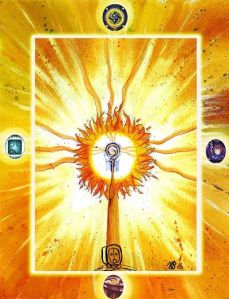 Kék: A belső átalakulás, az Én megerősítése, előző nap integrálása, az elmélyülés színe.
